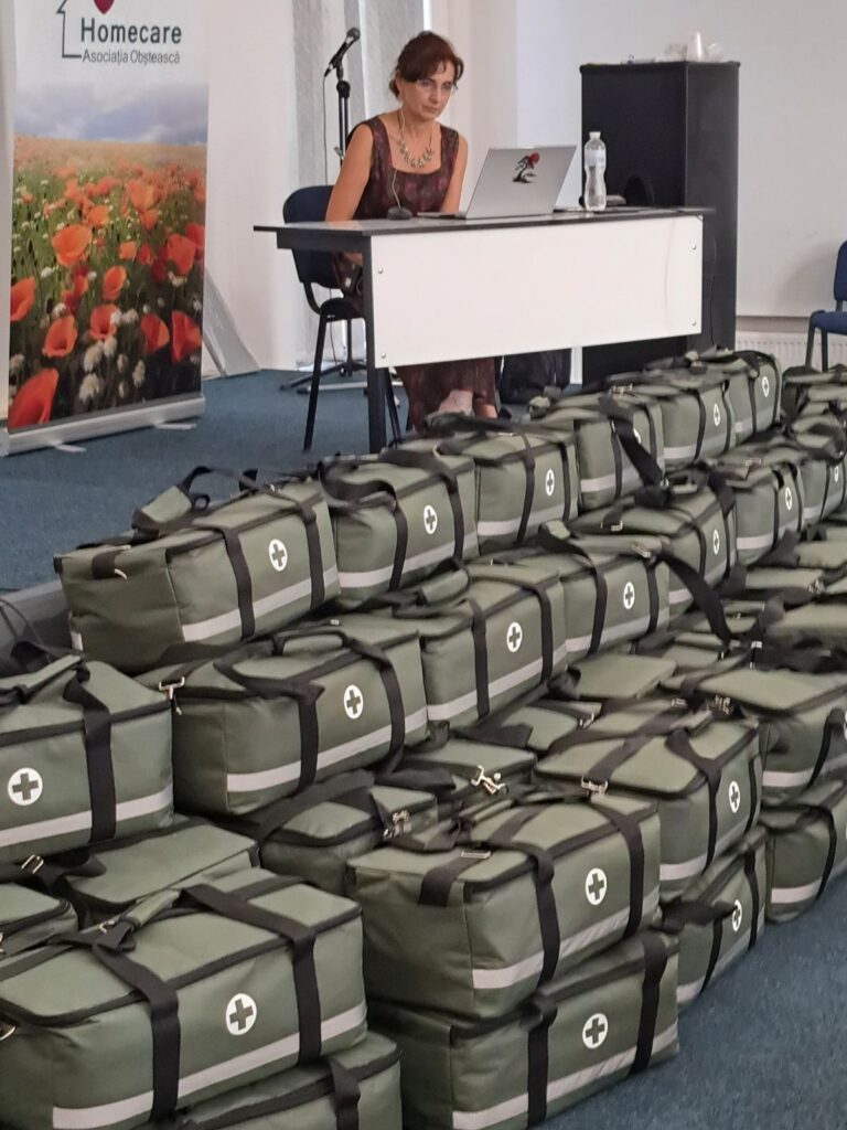 Toți participanții au primit câte o geantă complet echipată cu materiale de pansament și instrumente medicale de bază, menite să îi sprijine în activitatea de îngrijire la domiciliu și să asigure aplicarea imediată a cunoștințelor acumulate.