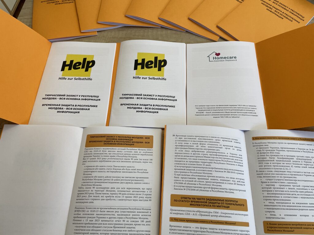 This activity falls within the project “Medical and Social Services for Ukrainian Refugees in Moldova – Phase III,” implemented with the support of the international organization HELP – Hilfe zur Selbsthilfe e.V., which allowed us, in the first two phases of the project, to support over 10,000 Ukrainian refugees by providing various forms of assistance, including medication and hygiene products, food, information, medical-social, legal, and psycho-emotional support.