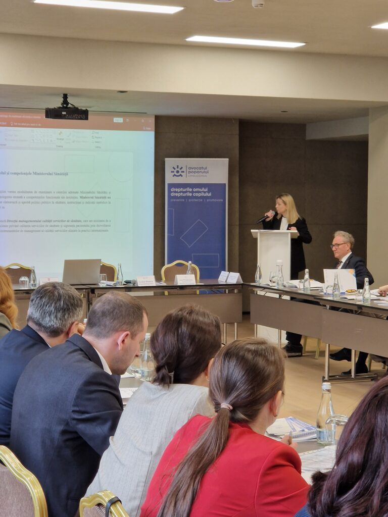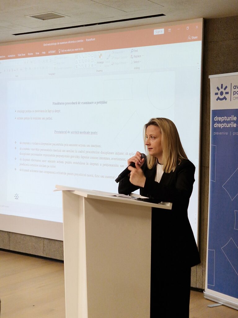 The first session focused on the presentation of a methodological guide on the effective handling of patients’ complaints by public authorities and healthcare institutions. The document was introduced by Olesea Doronceanu, who emphasized the need for clear and transparent procedures in the relationship between patients and public institutions 📑.